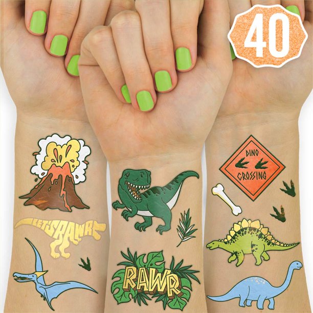 Xo Fetti Dinosaur Temporary Tattoos For Kids 40 Styles Birthday Party Supplies Dinosaur Party Favors T Rex Decorations Walmart Com